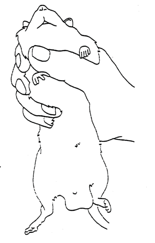 Rats are generally docile rodents provided they are approached and handled in a gentle manner. The rat should be picked up by grasping it around the shoulders (Fig. 1) and then lifted clear of its cage.