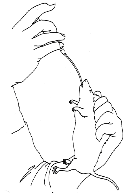 If the rat has become accustomed to handling, then it is often possible to carry out subcutaneous injection into the skin overlying the neck with minimal restraint.